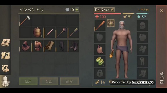 上画面では「棍棒」と回復薬に「リーキの揚げ物」を装備しています。