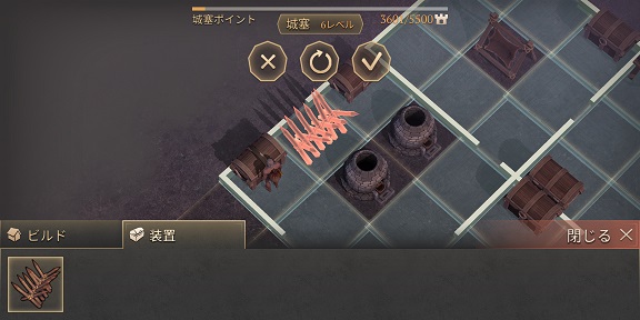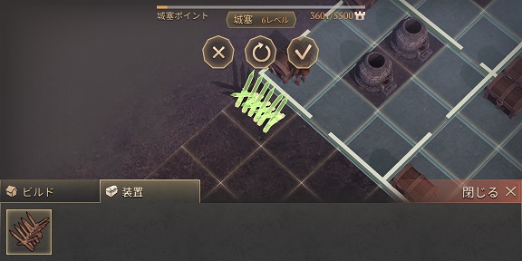 これで設置完了となります。「木のスパイク」は罠となり、時折、外からやってくる敵が接触する事で自動的にダメージを与えます。