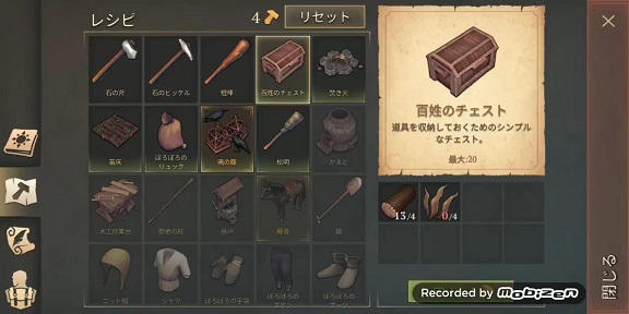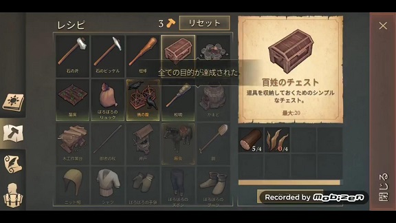 お題としては百姓のチェストをクラフト(2)となります。「百姓のチェスト」をクラフトするには「松の木の丸太(4)」と「亜麻繊維(4)」が必要。