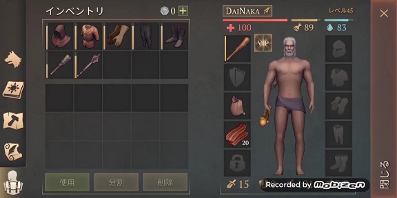 その為、装備は上画面の様に「棍棒」と「キルト装備一式」を用意しました。