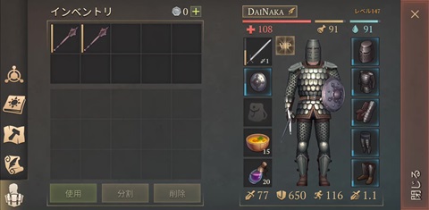 「スケイル防具」を一式と「クレイモア(1)」と「フランジメイス(2)」と回復薬をいくつか持っていきます。